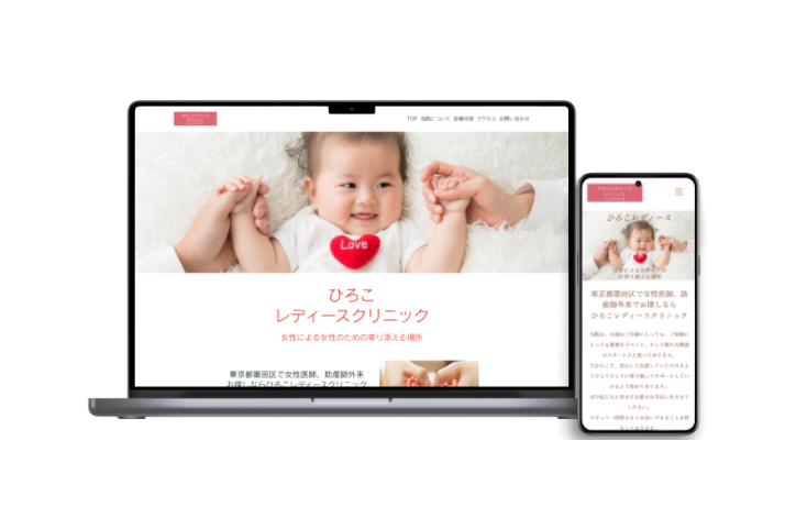 Wixにて制作。女性らしいデザインにするために淡いピンクをメインカラーに。安心し来院していただけるように、女医がいることやアクセスしやすいメリットが伝わるようにしています。