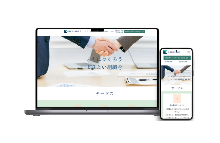 Wixにて制作。信頼感が伝わるようなメインビジュアルにしております。お問い合わせボタンをTOPにも設置することで、コンタクトしやすいようにしています。