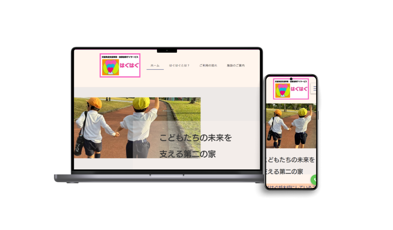 Wixにて作成。児童が通う放課後デイサービスサイトということで可愛いデザインにしました。保護者の方が安心出来るよう、どんな理念で行っているかが伝わるかと思います。